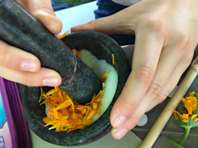 « Viens découvrir la nature de ta région à travers des activités ludiques, artistiques et magiques. La Sorcière dévoile ses secrets à qui saura la suivre sur son chemin… Chevauche ton balai et attrape ta baguette, c’est parti pour un fabuleux voyage là où il est possible de dessiner avec de l’encre de plantes, boire des potions magiques de fleurs et aller à la rencontre de sa pharmacie à ciel ouvert! »